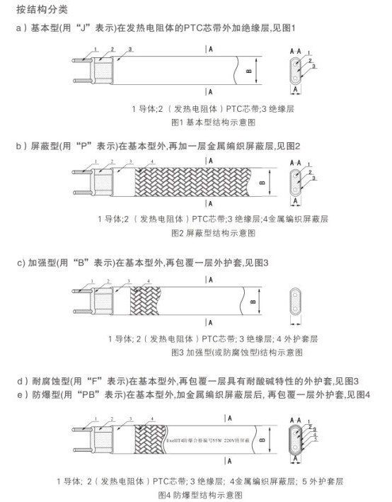 這類自控溫電伴熱帶的結構是半導電塑料外層有一層含氟聚合物的保護套。這類伴熱帶適用于干燥、無腐蝕性的環(huán)境和電氣上不要求接地的非危險區(qū)域。